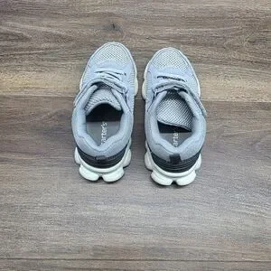 (1) pair of gray, velcro closure shoes