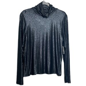 Lucky Brand Black & Metallic Silver Long Sleeve Turtleneck