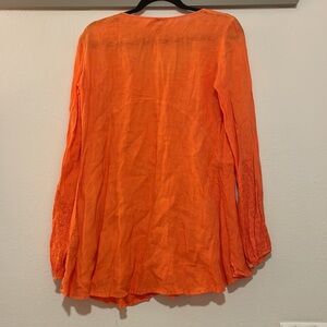 120% Lino Orange Linen Eyelet Detail Blouse SZ 40/US XS EUC
