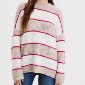 AEO Dreamspun Pink Cream Tan Oversized Stripe Sweater XS