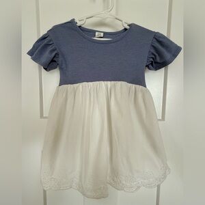 Adorable Baby GAP toddler dress in a soft blue bodice with a white skirt featuring delicate eyelet embroidery along the hem. Includes matching bloomers for a complete, polished look. Lightweight, comfy, and perfect for warm-weather days, family photos, holidays, or casual outings.