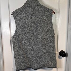 Soft heather gray vest by Patagonia. Features a full zip front and cozy fabric.