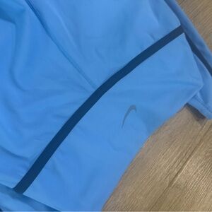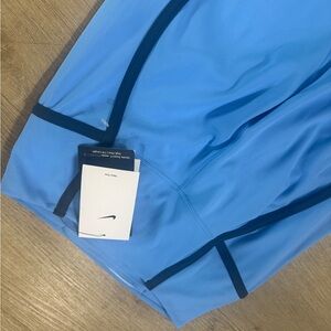 Elevate your workout with these Nike leggings. Sky blue with sleek black accents. Ideal for active wear.