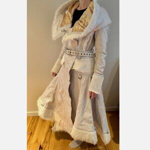 Ritual Fashion White Goat Hide Fur Huntress Coat Jacket Robe Oversize Hood 10