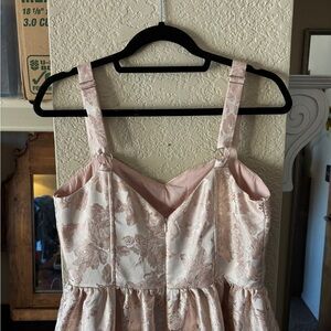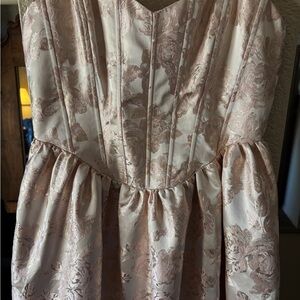 Beautiful pink floral maxi dress with a fitted bodice and ruffled hem. Perfect for special occasions! Worn once or twice, in like-new condition. No signs of wear noted.