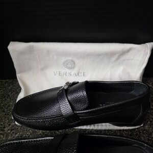 Versace Mens Black Leather Medusa Bit Loafers Slip On EU 40 Made In Italy