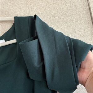 Keywords: Badgley Mischka dress, emerald green dress, designer cocktail dress, formal dress, evening wear, structured dress, timeless style, luxury brand dress