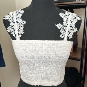 🟢Z&L WOMEN'S COSTA SOLID SMOCKED SLEEVELESS CROP TOP SIZE L WHITE