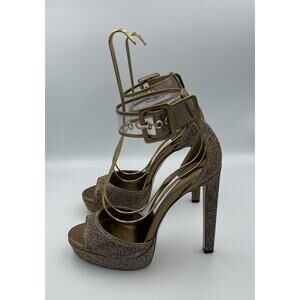 Jimmy Choo Gold Metallic Platform Heels Ankle Strap Sandals Size 38.5 US 8.5
