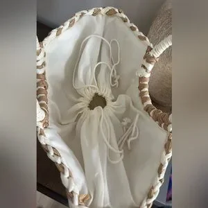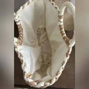 Elevate your style with this chic woven tote bag. Featuring a beautiful tan and cream design, it's perfect for any occasion. The sturdy handles ensure comfortable carrying. Ideal for everyday use or a day at the beach. Worn once, like new condition.