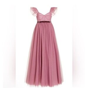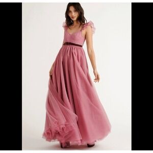 LoveShackFancy Macron Pink Tulle Gown Ruffle Sleeve Maxi Dress NWT $1095