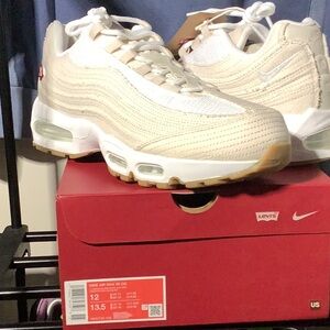 AIR MAX 95 OG “LEVI'S LIGHT OREWOOD BROWN" NWT size 12m-13.5w Trendy cream and white sneakers with a sleek design. Perfect for casual wear.