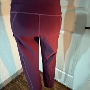 Stylish purple high-waisted leggings. Perfect for workouts or casual wear.