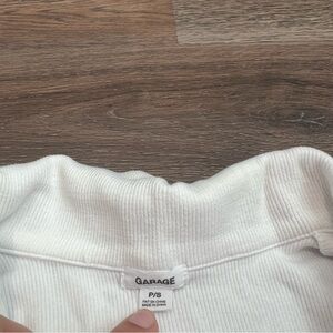 Garage Kate Cropped Polo Tee White Ribbed Collared Crop Top Size Small