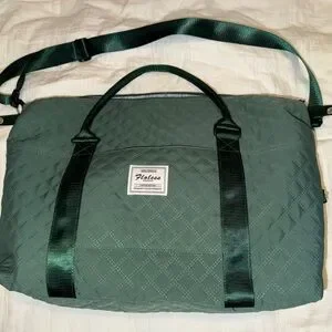 Stylish and durable green quilted duffel bag, perfect for travel or daily use. Features a comfortable shoulder strap and sturdy handles.