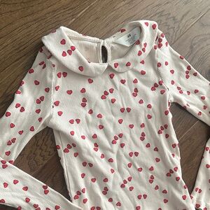Adorable long sleeve shirt. Features red strawberry print. Soft and comfortable fabric. Perfect for everyday wear. Never worn !! Great for Valentine’s Day !