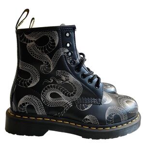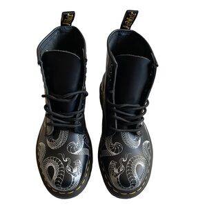 DR MARTEN 1460 Serpent Snake Print Black Leather Lace Up Boots Size 6 Womens Like New