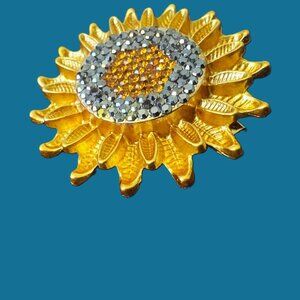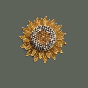 Elegant Gold Rhinestone Sunflower Brooch NWOT