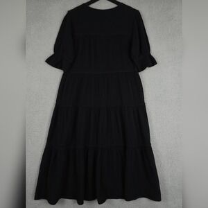 Chicos Dress Womens 2 US 12 Black Gauze Tiered Midi Puff Sleeve Casual Coastal
