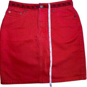 Tommy Hilfiger Logo Waistband Red Denim Skirt Size 2