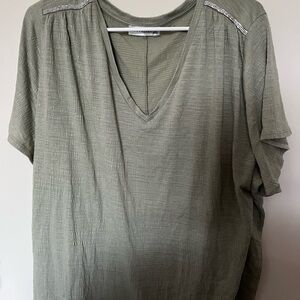Olive Green V-Neck Women Top