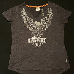 Genuine Harley Davidson Women's Eagle Short Sleeve Dark Grey Shirt Size L