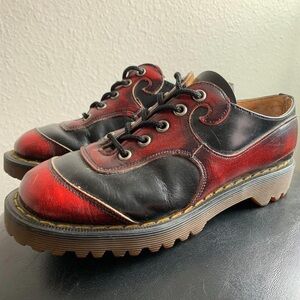 Vintage Dr. Martens x John Fluevog Red and Black Oxford Leather Shoes