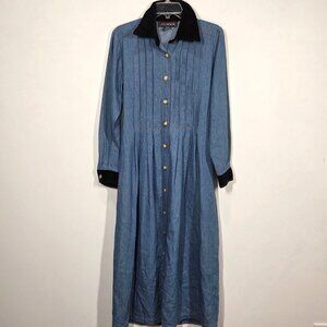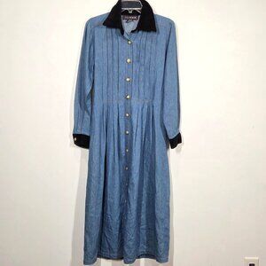 Vintage JG Hook Dress Medium Blue Denim Shirtdress Pintuck Maxi Prairie Cottage