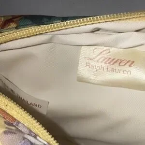 Vintage Lauren Ralph Lauren Yellow Floral CottageCore Mini Cosmetic Jewelry Case. In very good preowned condition