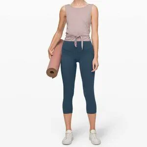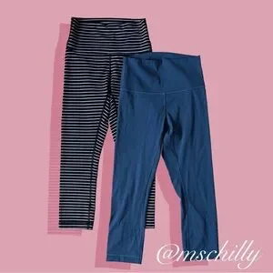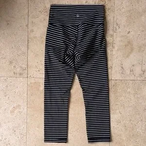 Lot of Lululemon Wunder Under Crop High Rise 21" Stripe Black White Blue Sz 4