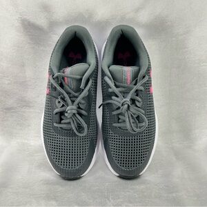 Under Armour sneakers featuring a gray mesh design and pink logo detail. Ideal for everyday comfort.
