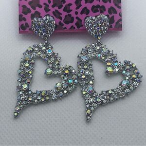 Betsey Johnson AB Crystal Heart Earrings
