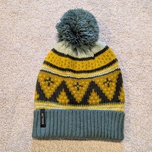 Arc'teryx Women's Fernie Toque Beanie Hat With Pom Pom, Green, Yellow, Brown