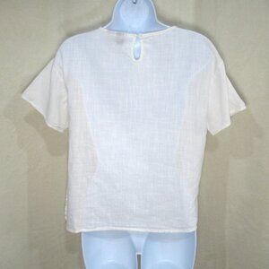 Perfect with high-waisted denim, linen trousers, or cutoffs for an easy summer vibe 🌿 The slightly sheer cotton makes it ideal for showing off a pretty bralette or layering over a swimsuit on beach days. Dress it up with tailored pants and slides, or keep it casual with sneakers and sunnies—this top does it all.