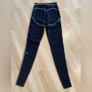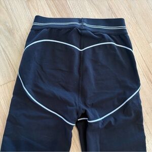 Alo Yoga Heart Throb Set. Includes Airbrush High-Waist Heart Throb Legging and Airbrush Heart Throb Bra. Color is black/white. Both pieces are size XS. Good used condition, some minor areas of pilling. Measurements included in pictures.