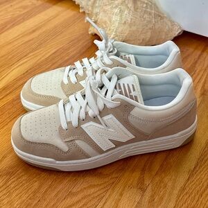 Comfortable New Balance sneakers in tan and white. Ideal for everyday wear. New, never worn. They are woman 7.