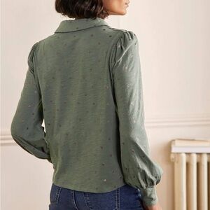 Tags: Quiet Luxury, Power Casual, Grandmillennial, Cottagecore, Modern Classic, Parisian Chic, Shabby Chic, Boden Cotton Top, Alder Foil Flower, Notch Neck Blouse, Metallic Floral Print, Long Sleeve Cotton Shirt, Size 16/18 Blouse, Boden Floral Blouse, Blouson Sleeve Top, Smart Casual, Holiday Sparkle.