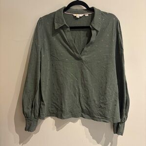 Boden Cotton Collared Notch Neck Cotton Top Alder Foil Flower Size 16/18