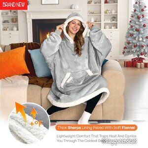 Brand new and in flawless condition — this cozy wearable blanket hoodie wraps you in exceptional warmth and comfort, perfect for lounging, relaxing at home, or gifting to someone special. The soft sherpa fleece is incredibly plush and designed for all-day ease.
