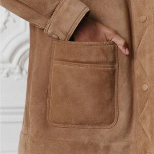 Chic Sezane teddy jacket. Rich brown with cozy cream collar. Perfect for layering.