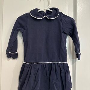This chic navy kids dress features stylish white accents, perfect for casual outings. A must-have for your child's wardrobe.