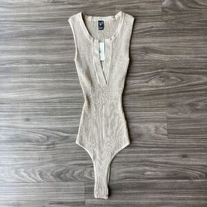 NEW Womens Down A Notch Sweater Knit Bodysuit in Taupe