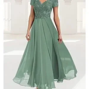 Step into sophistication with this elegant green maxi dress, featuring intricate lace detailing. Ideal for any formal event.