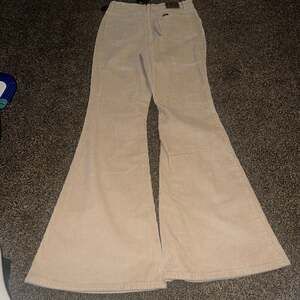 Lee Vintage Modern High Rise Flare Corduroy Pants in Tan, Size 30. These stylish bell bottom pants feature a wide leg flare and a flattering high-waisted fit in a soft Oxford Tan corduroy material.