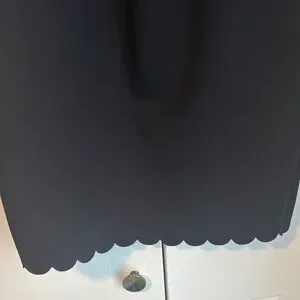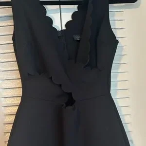 Chic black mini dress with scalloped edges. Perfect for stylish outings.
