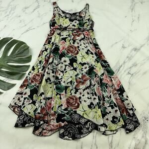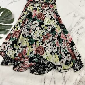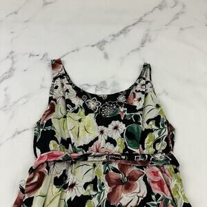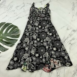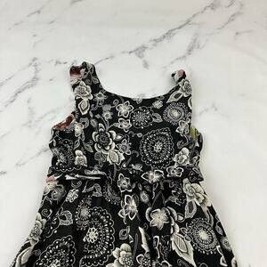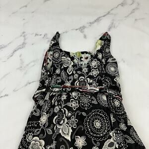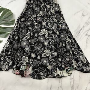 Womens Vintage 90s Reversible Slip Dress Size S Black Pink Floral Flutter Midi