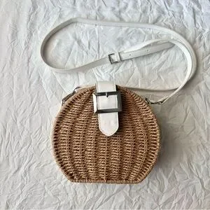 Stylish and versatile, this tan and white woven crossbody bag is perfect for any occasion. Its unique design adds a touch of elegance to your outfit. The straps are removable so you can also use as a clutch. Very spacious inside, in excellent pre-owned condition. Offers are welcome. π·