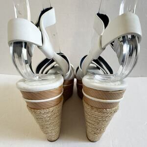 Ralph Lauren Purple Label Erin Espadrille Wedge Platform White Leather 37.5