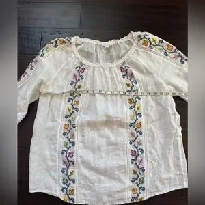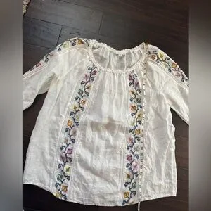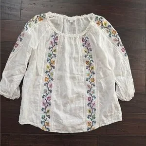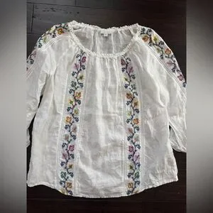 J Jill 100% linen embroidered white with floral detail blouse. Size large. In very good condition.