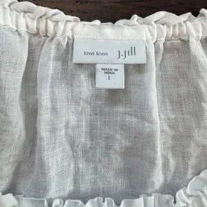J Jill linen embroidered flowy whimsical white floral blouse size L luxury chic